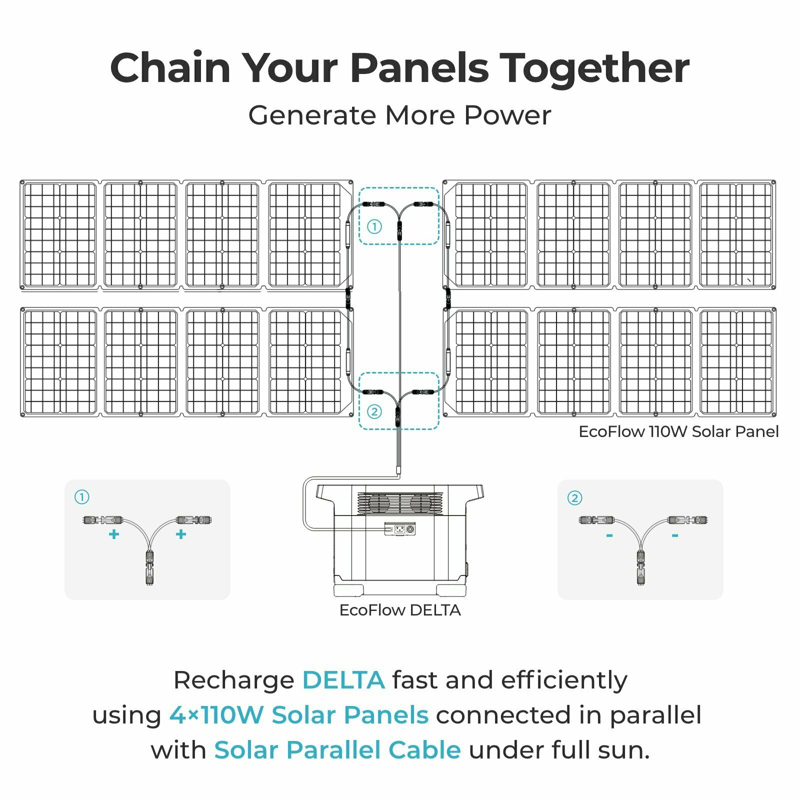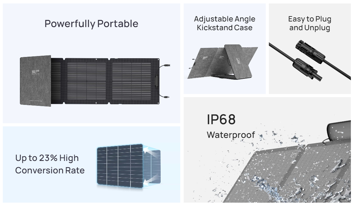 ECOFLOW 110W太陽能由高效的單晶矽電池組成,可以為DELTA和您的電器設備充電,並在連接到我們的便攜式電站時使您的設備運行不中斷。