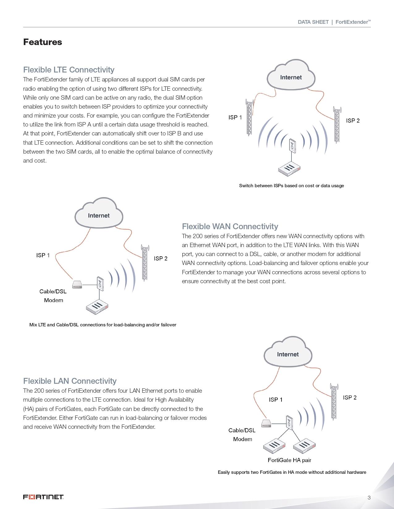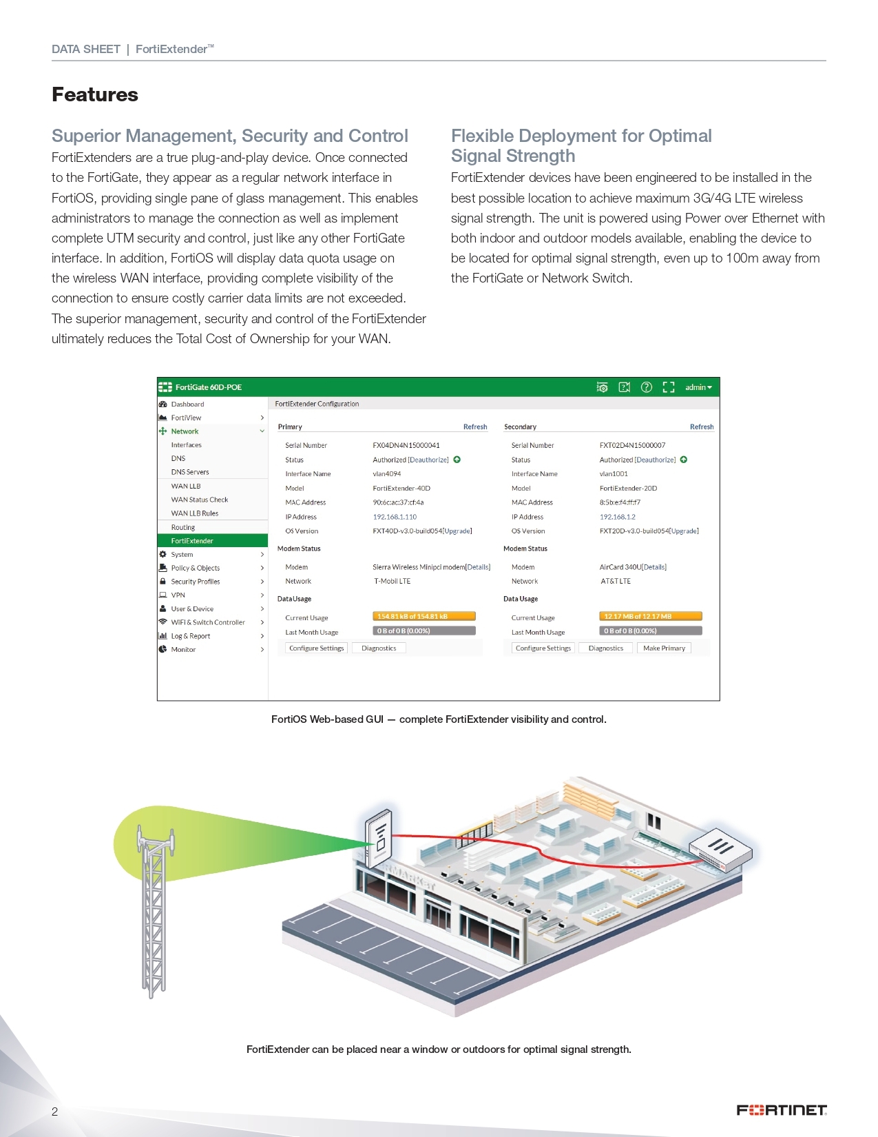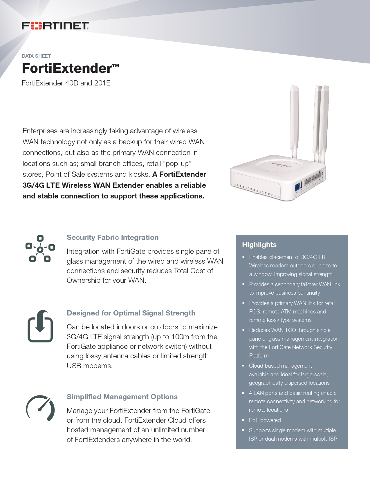 A FortiExtender 3G/4G LTE Wireless WAN Extender enables a reliable and stable connection to support these applications.